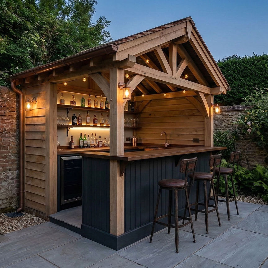 A garden bar can be as simple as an open-fronted serving structure on a terrace or as fully fitted as an enclosed pub room with heating, TV, and a working tap. The right style depends on your space, how you entertain, and how much use you want to get out of it through the year.