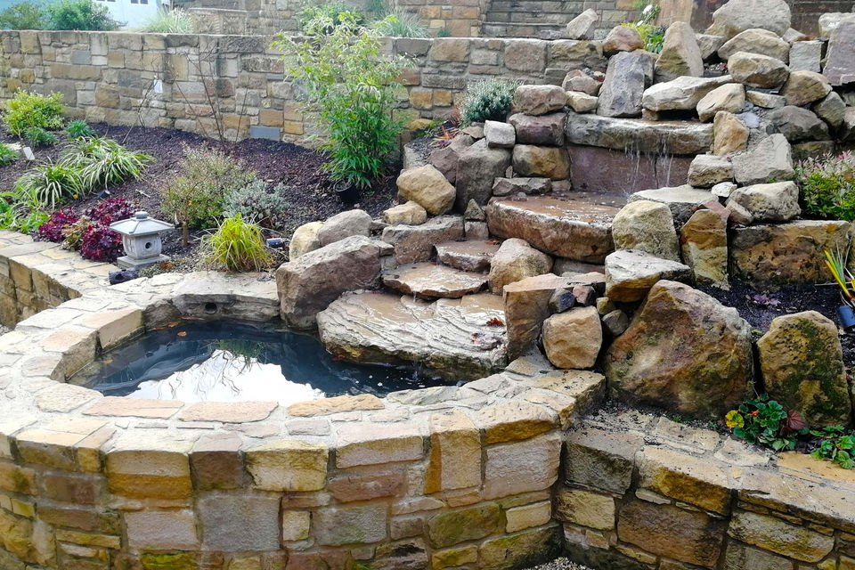 We agree feature type, materials, size, pump or gravity-fed options, lighting, and surrounding planting before any work begins.